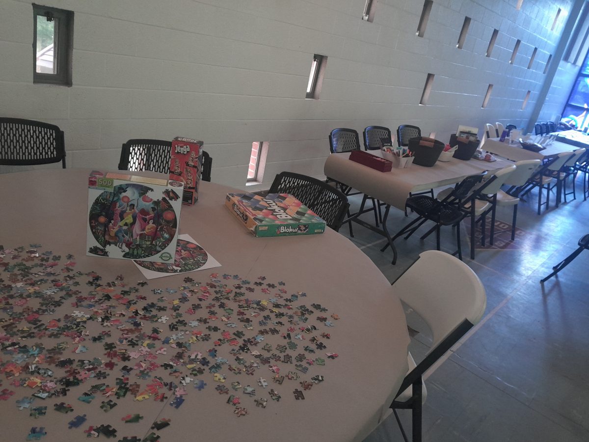 Inspired by the success and impact of this retreat, I wanted to share the basic structure, hoping it might serve as a model for other communities seeking to create similar connections. Our sanctuary was transformed into a welcoming space. A circle of chairs facilitated group activities, while comfortable furnishings, generously loaned by the community, created cozy lounge areas where families could simply relax and enjoy each other's company. Our dining area buzzed with the quiet concentration of puzzles and the friendly competition of board games. Outside, the energy extended to a disc golf course and a volleyball net.